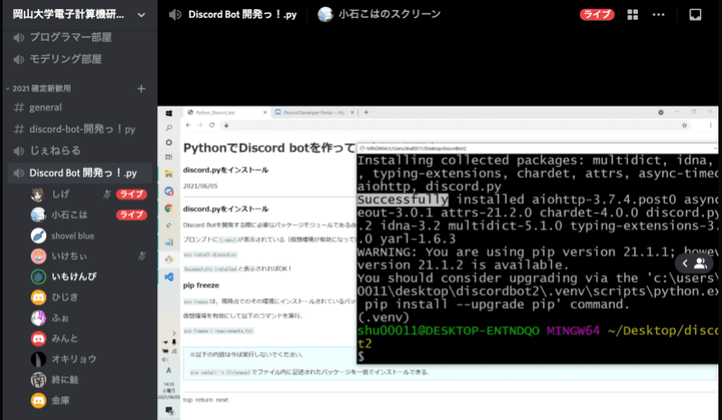 OUCRC(岡山大学電子計算機研究会)で「PythonでDiscord Botを作ろう!講習会」を主催しました。